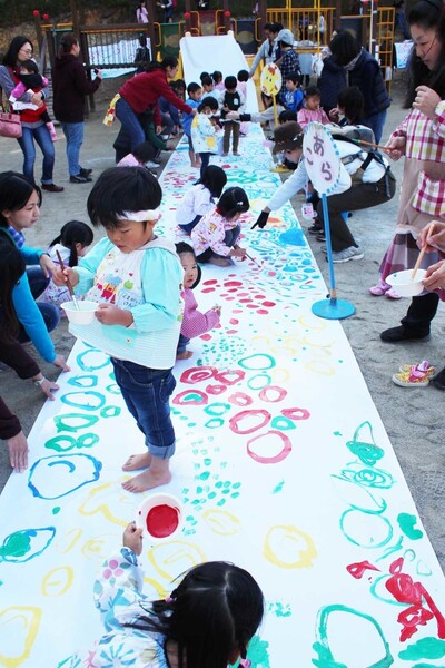 子どもたちと大きなキャンバスに絵を描くプログラム *変更の可能性あり