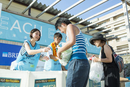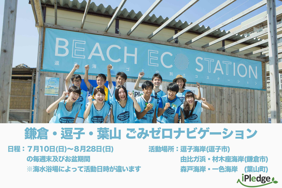 ごみゼロナビゲーションでは、2015年から逗子海岸においてエコステーションを設置し、ボランティアスタッフとともに、ごみ・資源の分別回収を通じて、来場者、海の家、市民など海岸を利用する方々が協力しあい参加することで、モラルとマナーが保たれてクリーンな環境になることを目指して活動を実施しました。 2016年は逗子海岸に加え、鎌倉市の2つ海岸(由比ガ浜海水浴場、材木座海水浴場)、葉山町の2つの海岸(森戸海岸海水浴場、一色海岸海水浴場)に活動の場を広げ、クリーンでピースな海水浴場を目指して活動を実施します。活動場所