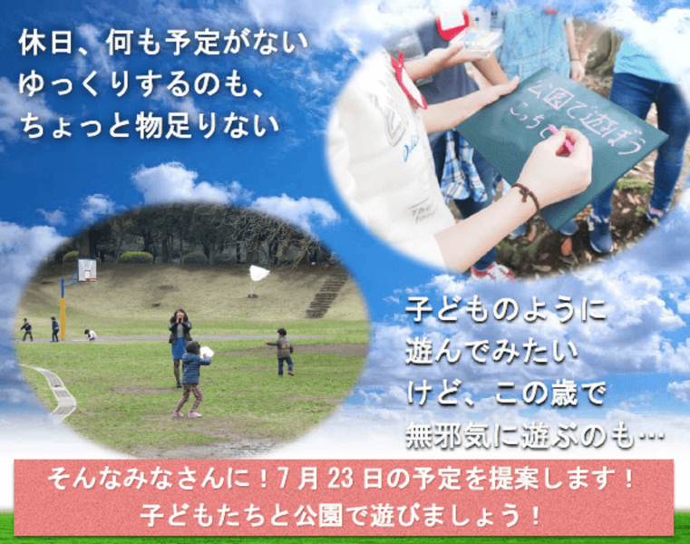 お子様と一緒に公園でさまざまな遊びをしよう!という企画を行います。