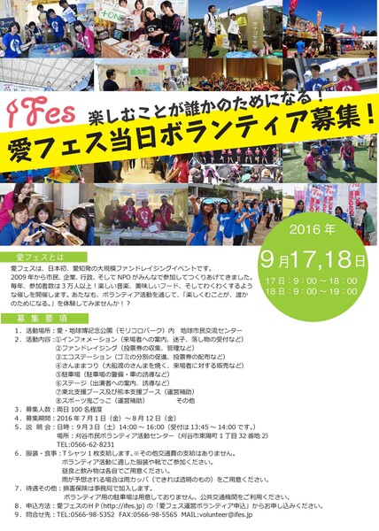 愛フェスホームページの「愛フェス運営ボランティア申込」からお申込みください。