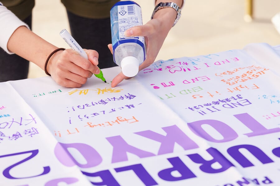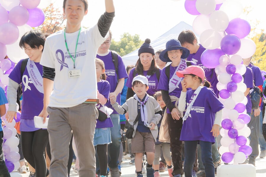 パープルの色で統一された「すい臓がん啓発イベント」のサポートです
