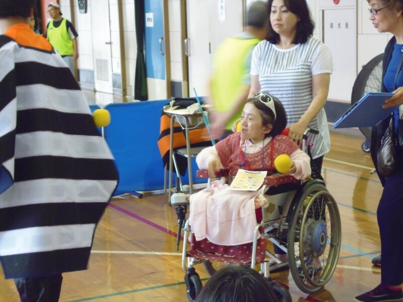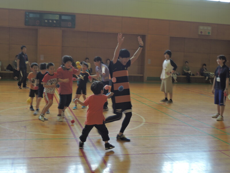 障がいのある子や健常の子供たちが一緒に遊べる「ペガーボール」の鬼役です