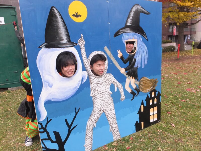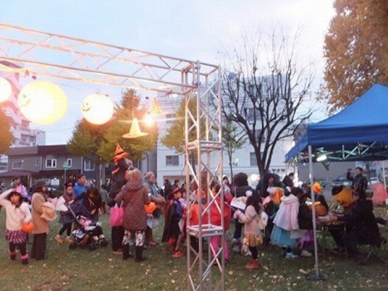 内容:子どもたちがハロウィンの仮装をして、ポプラ若者活動センターのある白石区東札幌周辺地域の