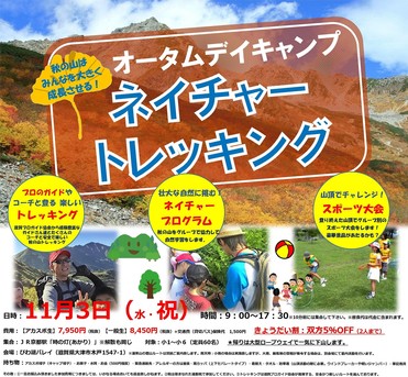 - 11/3(木・祝)オータムデイキャンプ ネイチャートレッキング(秋山登山)