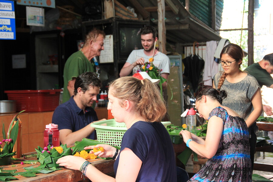 15,000タイバーツ(約4万5千円)の参加費に含まれているものは、プログラム内の現地交通費(移動の時の車代)、すべての食費(1日目の夕食を除く)+飲料水、宿泊、観光、お祭り参加、村人ガイド、日本語通訳、日本語での山岳民族についてのレクチャー・オリエンテーション費、ボランティア時に発生する材料費や建設費、お土産(水筒入れとオリジナルTシャツ、竹のコップ)です。 |
