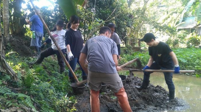 山の小川にいくつもの小さな堰(小さなダムのようなもの)を作ったり、野生のバナナの植樹を行っています。一旦貯えられた水辺では、その地域の人々が食料にする魚やカニ、貝だけではなく、その他様々な動植物が生息し、木が育ちます。