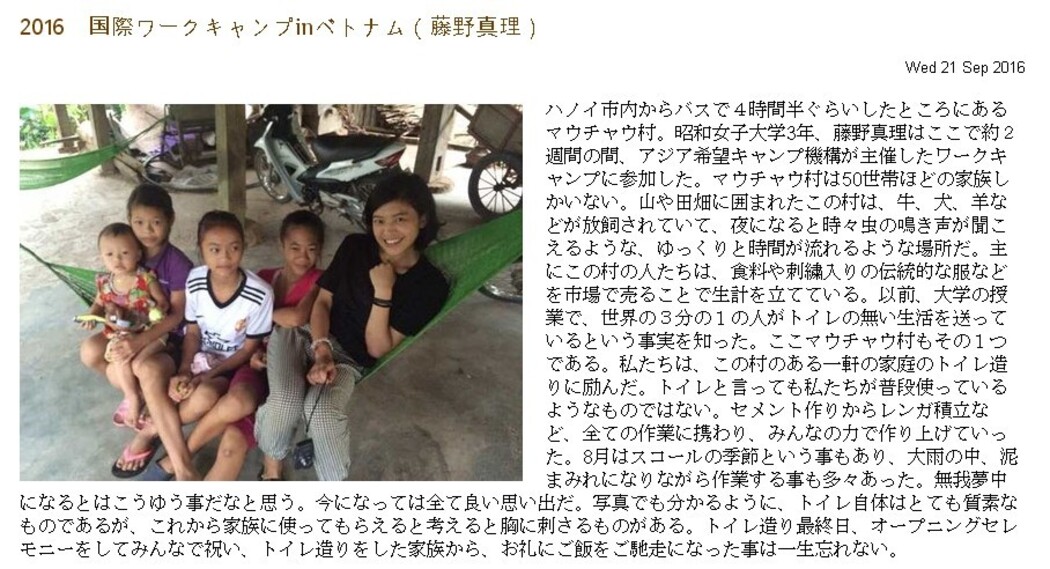 「アジア希望キャンプ機構」 国際ワークキャンプ