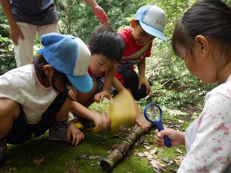 自然の豊かな場所で、季節ごとにテーマを決めて、その中で自由に遊ぶ活動です。植物、動物、友達、地面など目に見えるもの全てから様々なことを教わります。