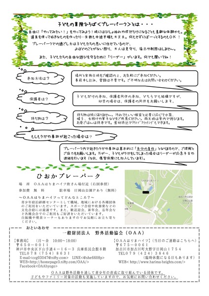 子どもが自由に遊べる野外遊び場です。プレーリーダー募集!