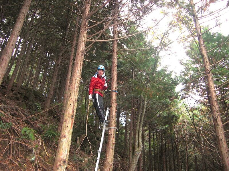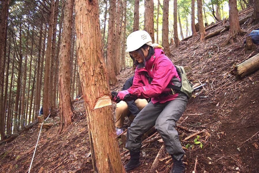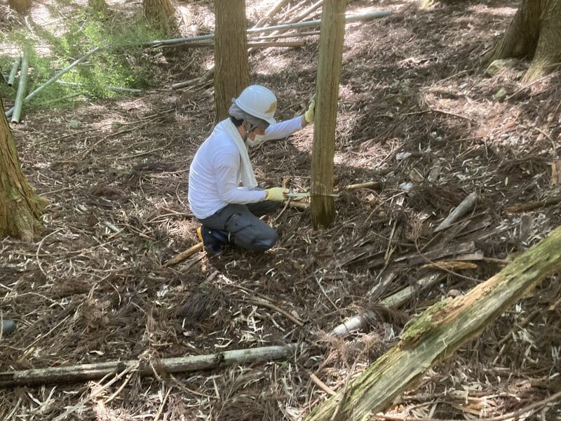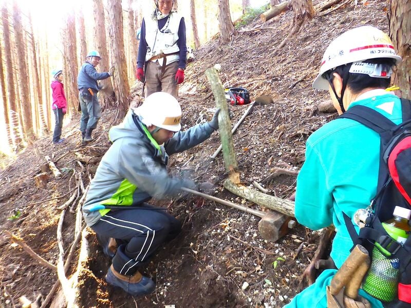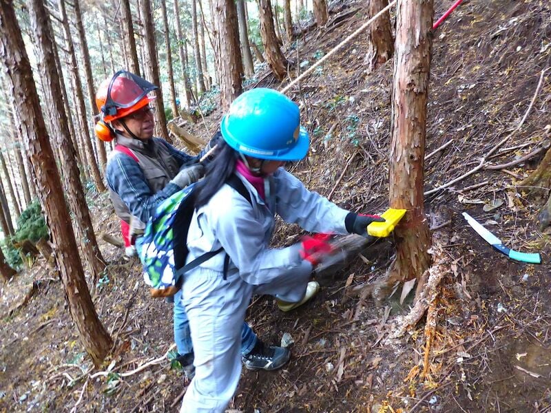 1日目・2日目ともに行った作業は「手ノコで木を切り倒し、ふもとへ降ろす」ことです。