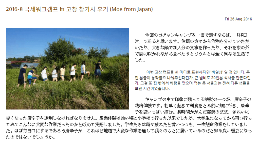 世界の青少年たちと一緒に国際交流in Ganghwa,Korea