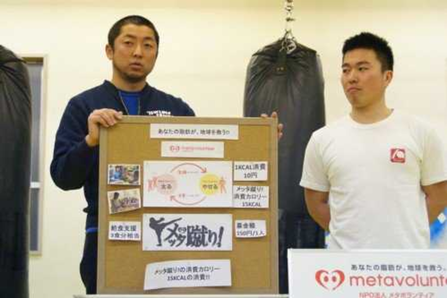 今まで「メッタ蹴り」や「メタボウリング」など企画し、楽しみながら脂肪を燃焼し、燃焼したカロリー分貧しい子どもの給食として届けられます。