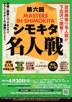 2017年4月30日(日)に開催する「第六回シモキタ名人戦」のボランティアスタッフ募集中です!将棋、どうぶつしょうぎ、囲碁、バックギャモン、かるたが好きな人、下北沢が好きな人はぜひお申し込みください。