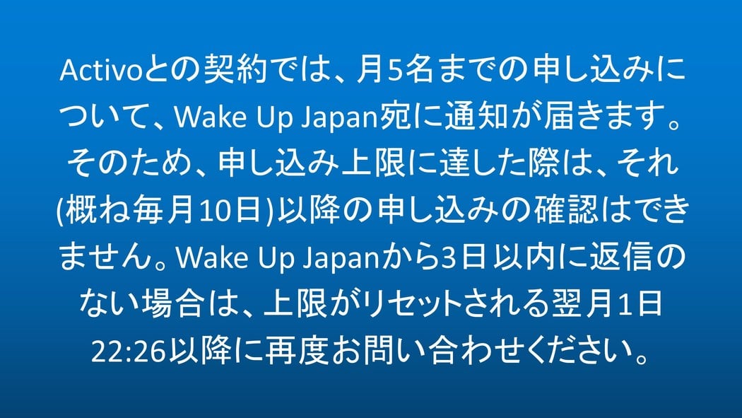 Wake Up Japanこの募集の受入団体「Wake Up Japan」をフォローして、