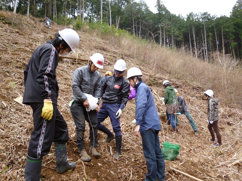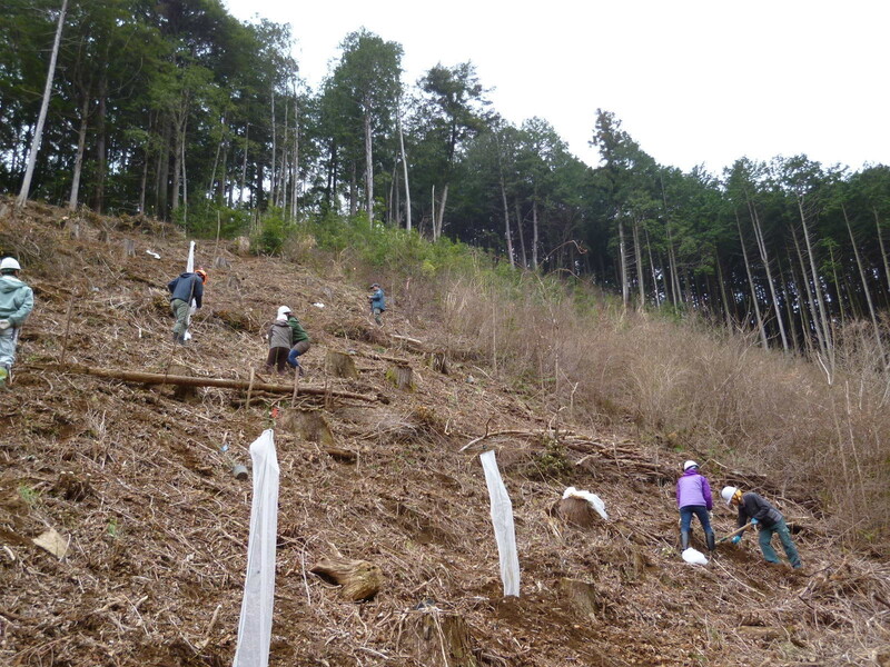 伐採後そのままとなっていた山林でクルミなど50本の木を植えます!