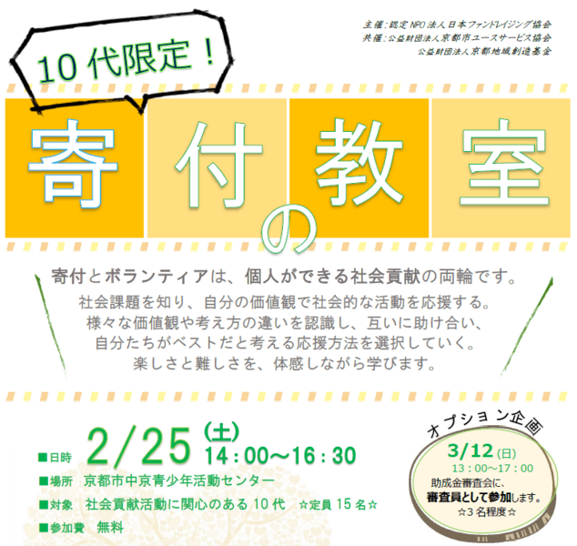 *共催:公益財団法人 京都市ユースサービス協会 公益財団法人 京都地域創造基金