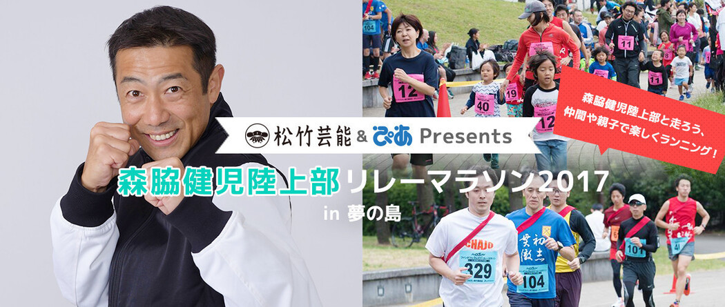 「松竹芸能&ぴあ PRESENTS 森脇健児リレーマラソン2017 in 夢の島競技場」を一緒に盛り上げてみませんか?