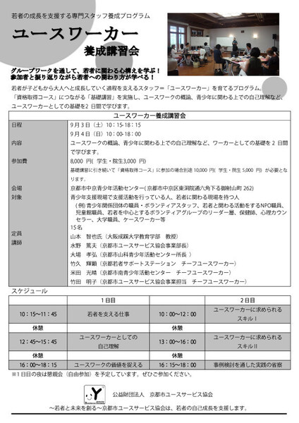 若者が子どもから大人へと成長していく過程を支えるスタッフ=ユースワーカーを育てるプログラム。