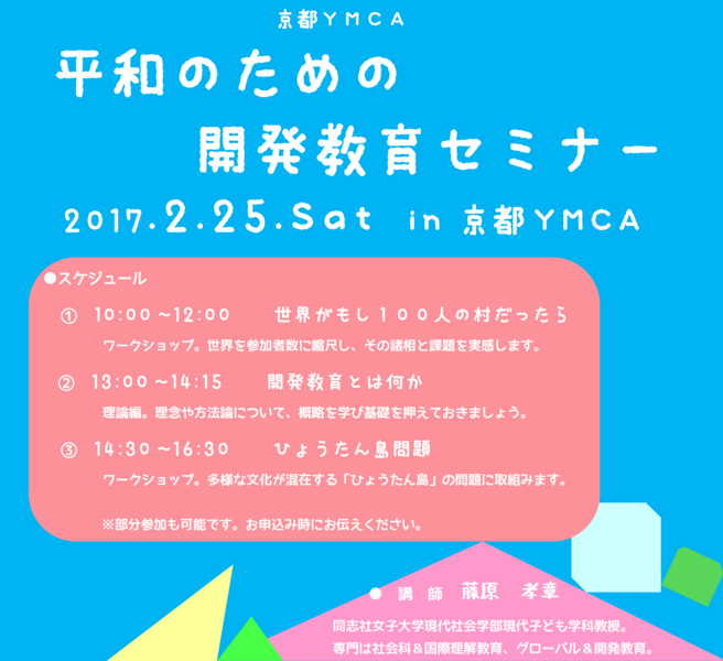 ●申 込・問い合わせ :公益財団法人京都YMCA 〒604-8083 京都市中京区三条通柳馬場東入中之町2