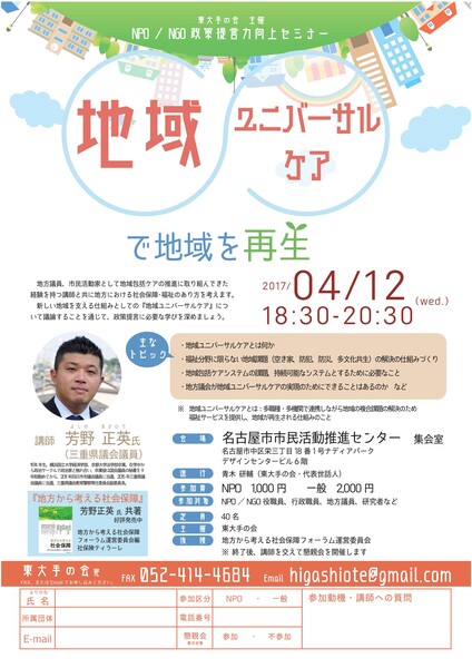 ■NPO/NGO政策提言力向上セミナー『地域ユニバーサルケア』で地域を再生 開催のご案内