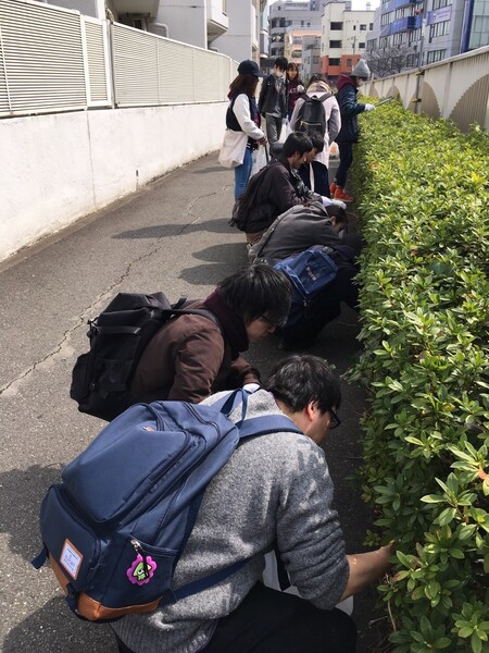 【集合場所】 高田馬場駅ロータリー(当日えんじ色のパーカーを着たメンバーが誘導に立っています)