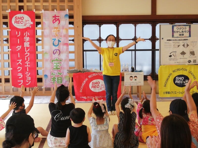 小学館レクリエーションリーダーズクラブはミュージカルや手品などの舞台活動や広場遊びなどのレクリエーション活動、キャンプ活動を通して「実行力」「表現力」「指導力」を養い「トータルレクリエーションリーダー」の養成を目指しています。