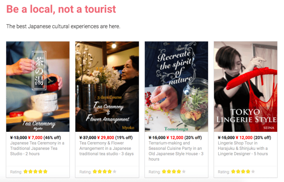 茶道、日本料理などの5つのアクティビティを運用しており、