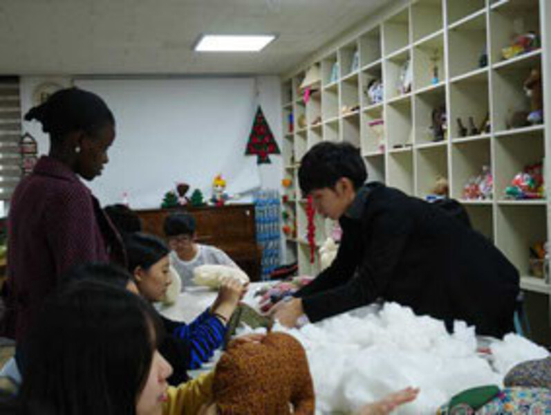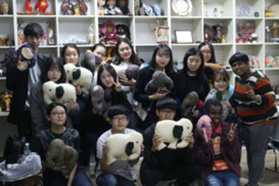 次に「多文化共生」というプログラムにも参加させていただきました。これは韓国の中高生と一緒に国際ボランティアをするプログラムで、普段生活している中で決して会うことのできない韓国の中高生たちと交流する貴重な体験でした。ボランティアしながら彼らが将来どのようなことを考えているのか、学校生活はどのように送っているのかを知る機会になりました。私はこの「多文化共生」を通して特別に短期のアルバイトをする機会に恵まれました。アルバイトでは韓国に移住してきた移住民を模した人形を販売、または韓国の子供たちに人形作り体験をさせるものでした。私の韓国語がつたなく、苦労したこともありましたが、韓国の子供たちに少しでも国際的な雰囲気、「多文化」を感じさせることができたのだと思います。