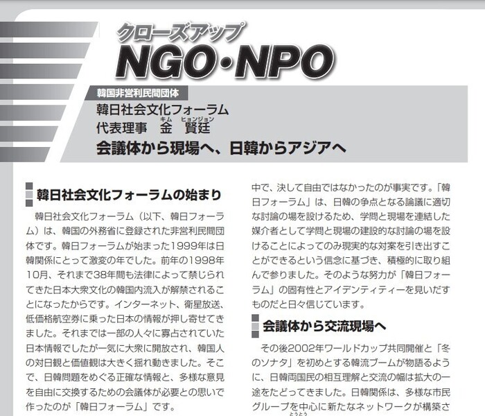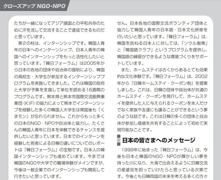 「日韓」がアジアに希望の種を植えて多文化社会を実現することが活動目的です。