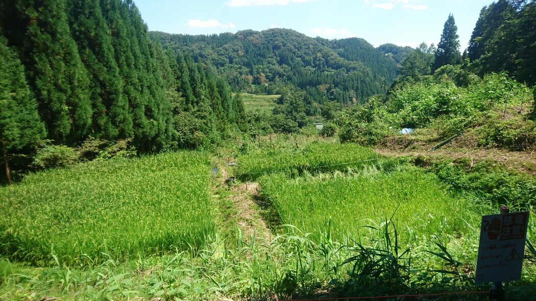 30年間耕す人がおらず、自然に帰していた場所を昨年開墾した棚田。山の斜面に、昔ながらの小さな田んぼが連なる、山奥の秘境。傾斜あり。