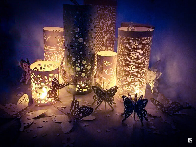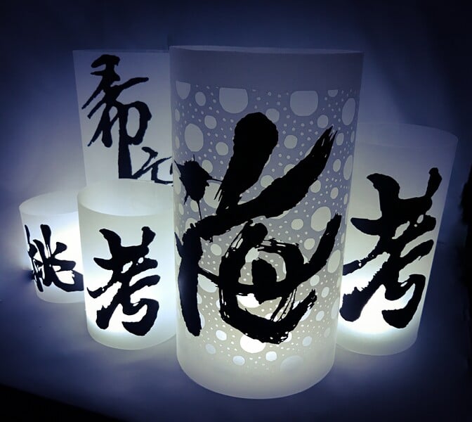 着物の型紙模様をモチーフとした切り絵のランプシェイド