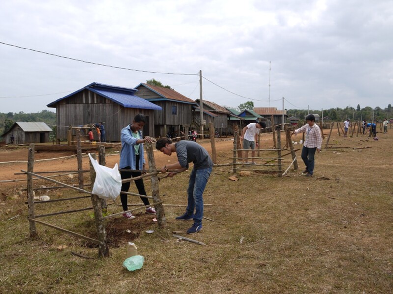 2016年度(カンボジア国)研修の様子:苗木の食害防護フェンスづくり