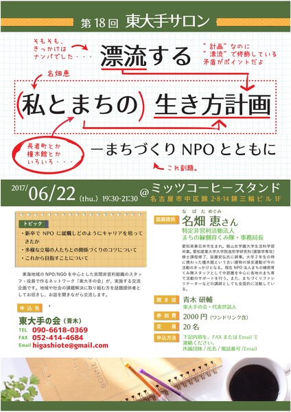 ○東大手サロン【第18回】漂流する(私とまちの)生き方計画 ~まちづくりNPOとともに~