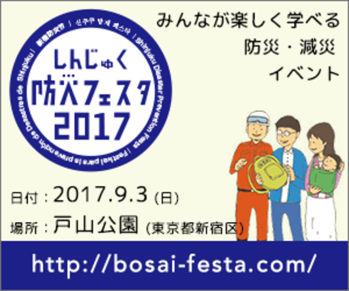楽しみながら防災・減災について学ぶイベント「しんじゅく防災フェスタ2017」が9月3日(日)に開催されます!