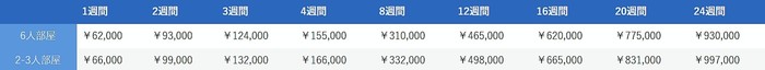 無料 留学費用は滞在期間、お部屋タイプによって異なります。 |