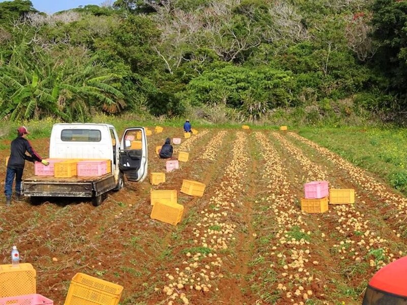 島には赤土の畑が広がっており、ジャガイモやサトウキビの他、特産のテッポウユリ(エラブユリ)の球根栽培、