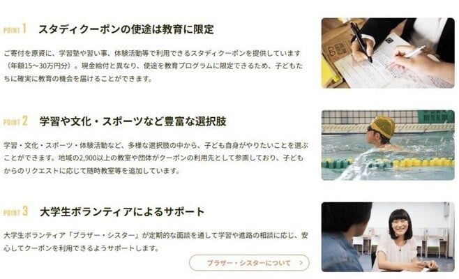 子どもの教育格差は、放課後(学校外)で生まれています。経済的な困難を抱える子どもたちに塾や習い事、体験活動などで利用できるスタディクーポン(学校外教育バウチャー)を提供しています。