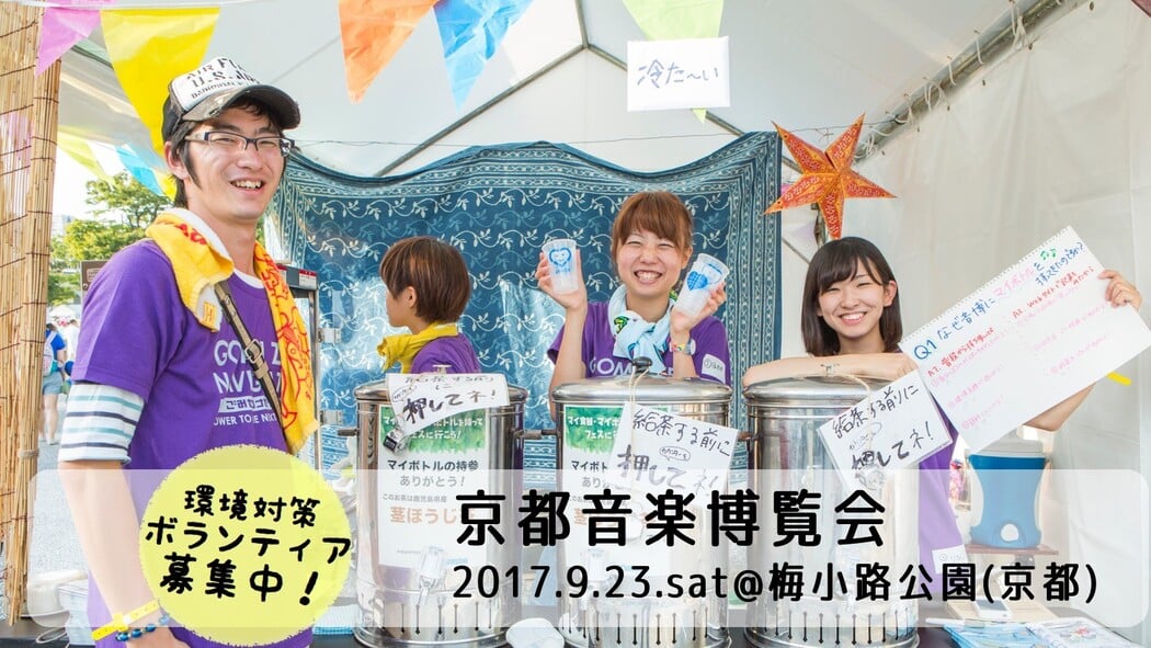 今年もごみゼロは、くるり主催の夏フェス「京都音楽博覧会」にて、オリジナルごみ袋の配布と、ごみ・資源の分別ナビゲート、そして京都ならではの活動として、マイ食器・マイボトル持参で来場したくなる、嬉しいしかけを用意したブースも運営します。京都の夏を彩る京都音楽博覧会を共につくりあげる、そんなごみゼロボランティアを今年も募集しています。あなたの応募を待っています!