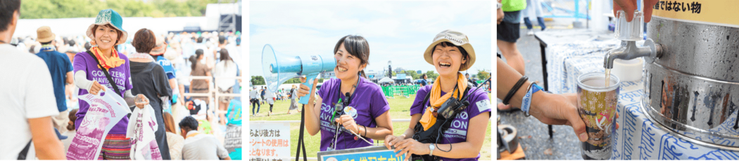 イベントに参加する全ての人々が、自分の手でごみや資源を分別できたり、環境に目を向けるようになることで、クリーンでピースフルなイベントをつくりあげるとともに、自ら周囲を巻き込んで社会を変えていくことのできるワカモノを増やしていくことを目指して活動しています。