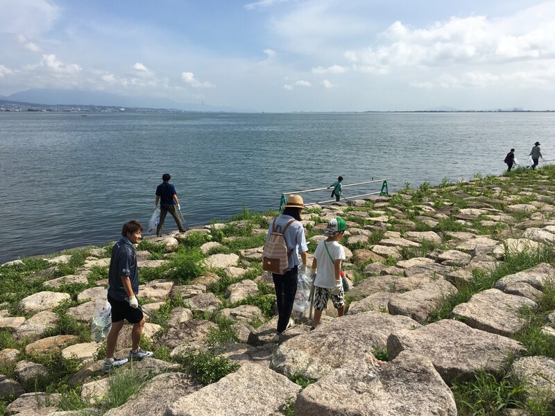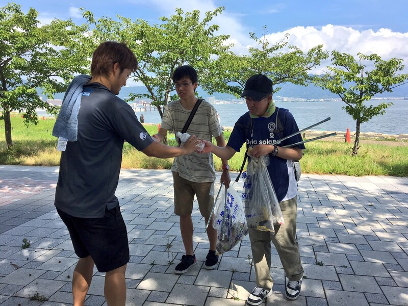 プロバスケットボール選手と一緒にびわ湖湖岸沿いをウォーキングをしながら、街をキレイに!身も心も健康に!