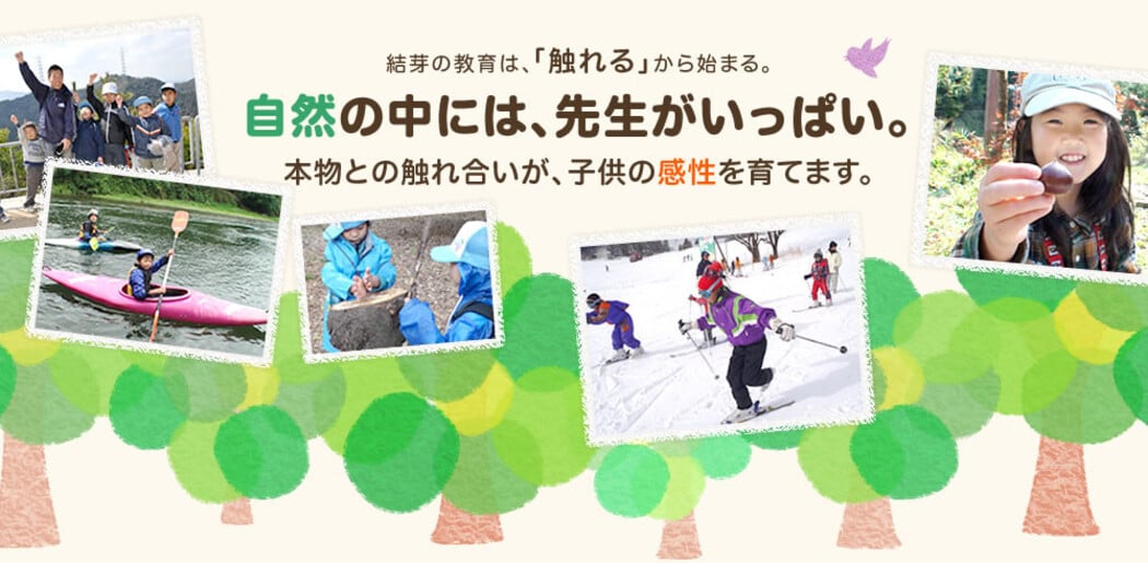 特定非営利活動法人(NPO法人)結芽は、子供たちが自然に触れ合う機会を通じて多くを学び、人として大切な感性や「生きる力」を磨いてほしいとの思いから設立されました。「生きる力」とは、現在置かれている状況を的確に判断し、最善の行動を取ることです。この「生きる力」に欠かせないのが、豊かな感性です。目の前にあるものや触っているものに関心を持ち、それが何であり、何に見え、自分にとってどういう意味を持つのか。こうした気づきの機会を持つことで、子供たちの感性は磨かれていきます。自然体験を通してそのような感性を磨き「生きる力」を身につけ、そして、子供たちに心豊かで素晴らしい人生を送ってもらうことが、結芽の役割であると考えています。