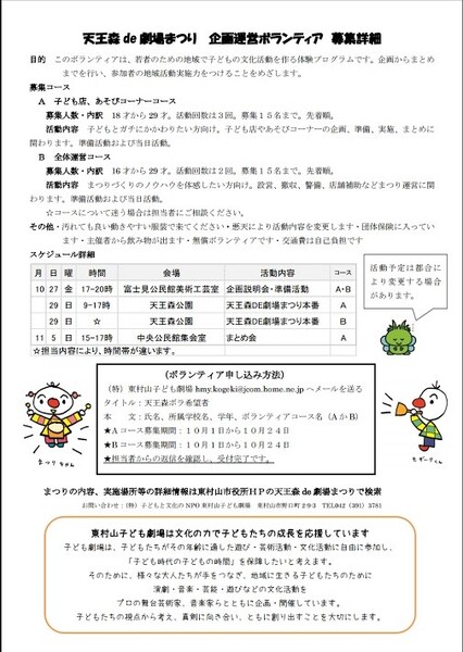 - 【東京都東村山市】天王森de劇場まつり 運営ボランティア