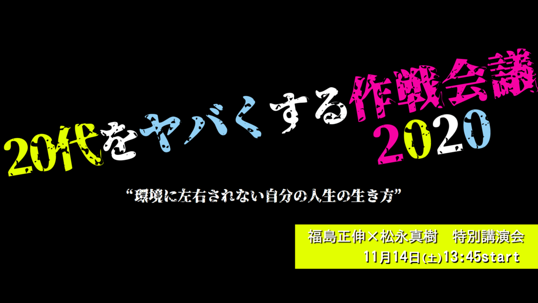 - \20代をヤバくする作戦会議/福島正伸×松永真樹特別チャリティー講演会