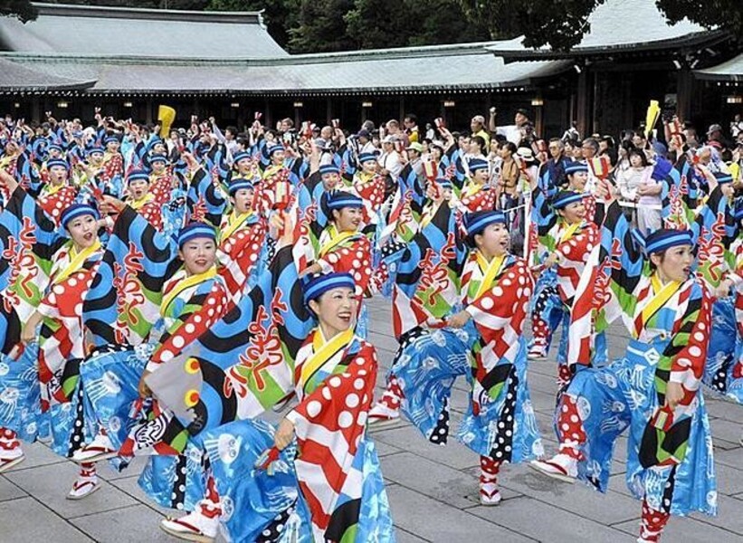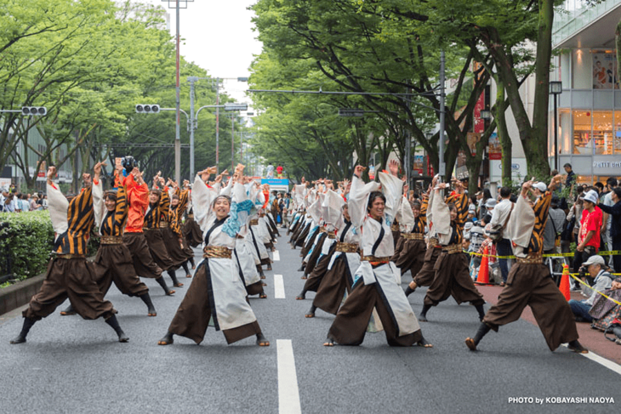 | 祭紹介 | 全国各地から毎年約100チームが表参道に集結し、個性豊かな熱氣溢れる"よさこい鳴子踊り"を披露します。 |