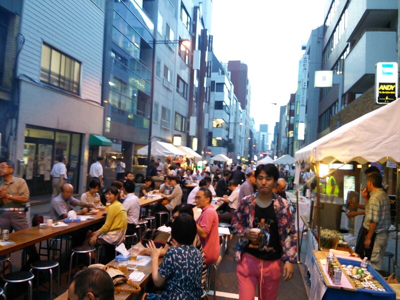 なんと神田の道路を封鎖しての路上大宴会・ライブステージ、屋台村など、 参加者約1,000人が路上で楽しみます。