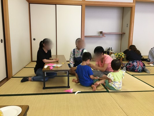 ・ママたちがお話を聞いている間、子どもたちと折り紙したりお絵かきしたりしていました。