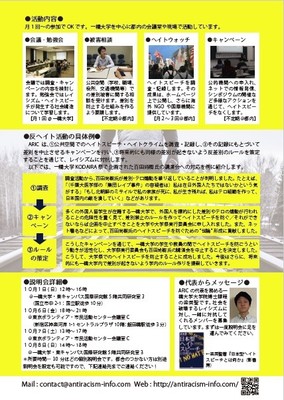 …会議では調査・キャンペーンの内容を検討します。勉強会ではレイシズム・ヘイトスピーチが発生する社会構造について学習します。