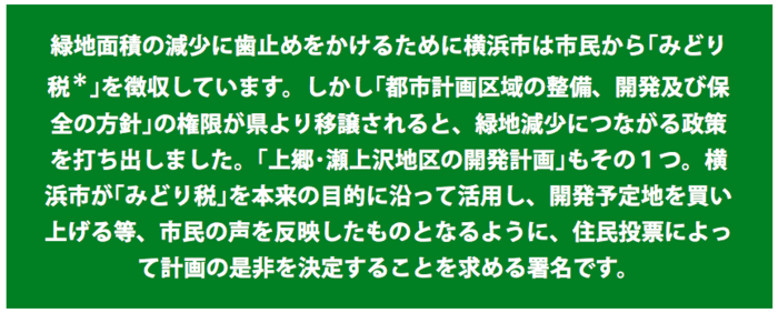 横浜のみどりを未来につなぐ署名運動を行うボランティア募集