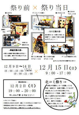 - 12/15(日)おまつりスタッフ募集!!「北コミまつり」