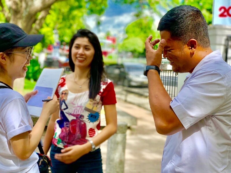 ãã£ãªãã³äººè¬åž«ãšè¡ãžé£ã³åºããèªåã§æ±ºããããŒãã«æ²¿ã£ãŠçŸå°ã®äººã«è±èªã§ã€ã³ã¿ãã¥ãŒã